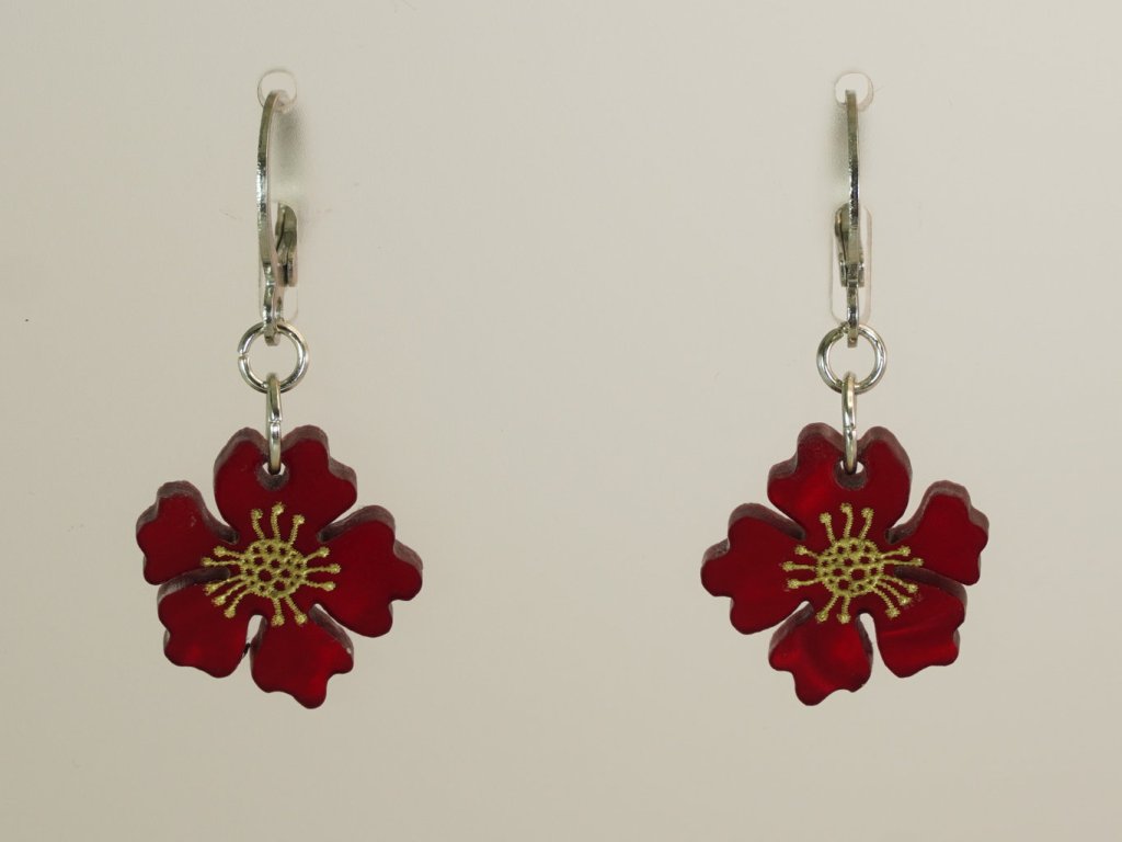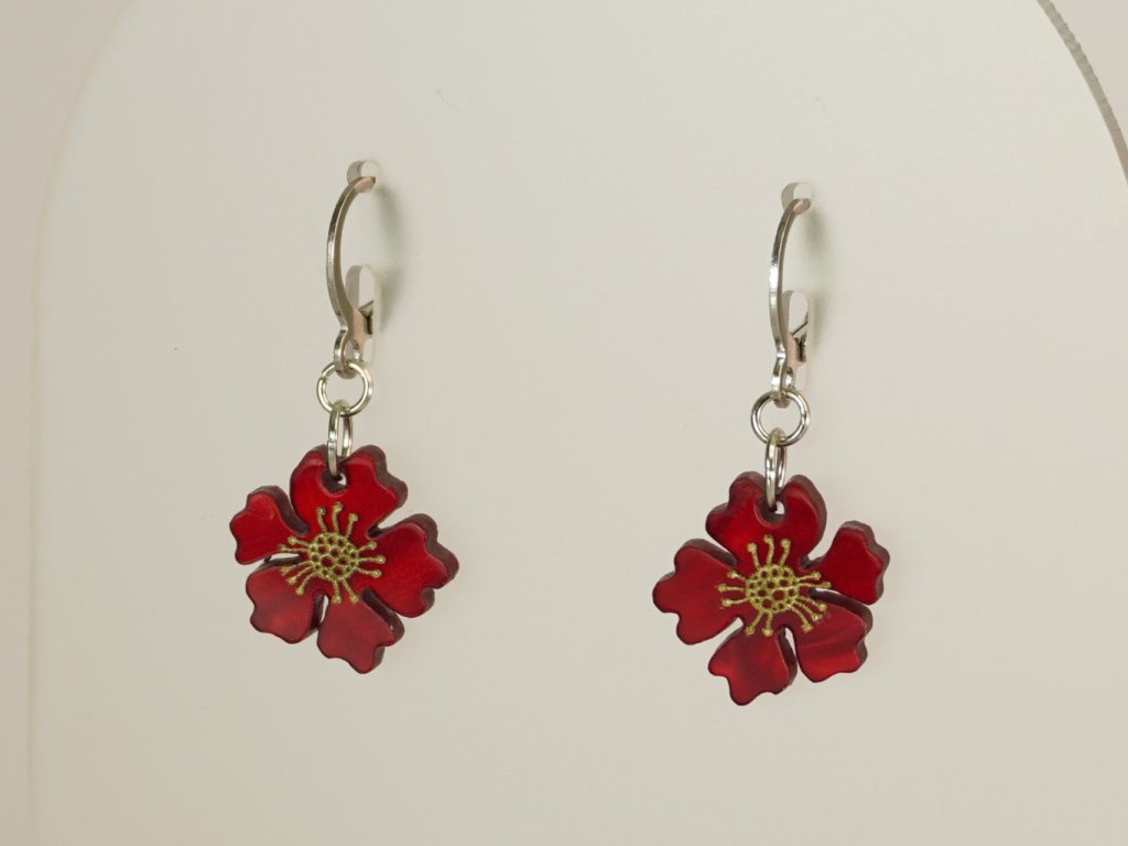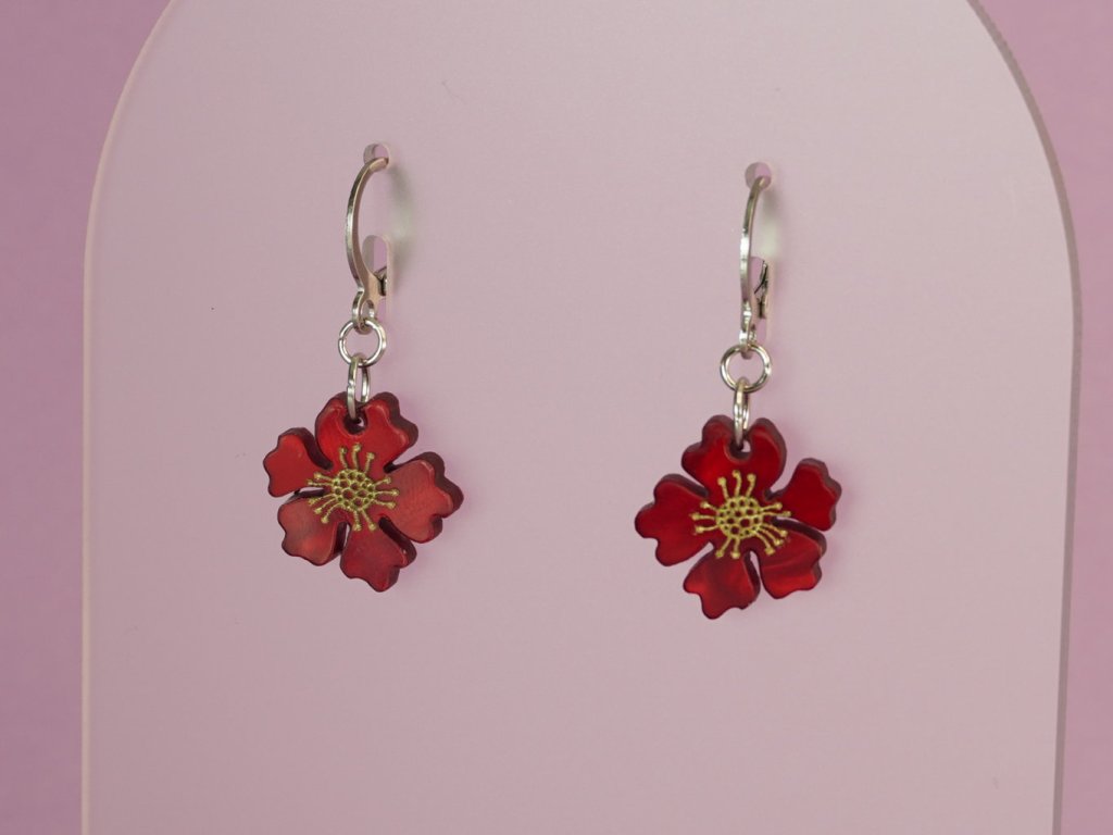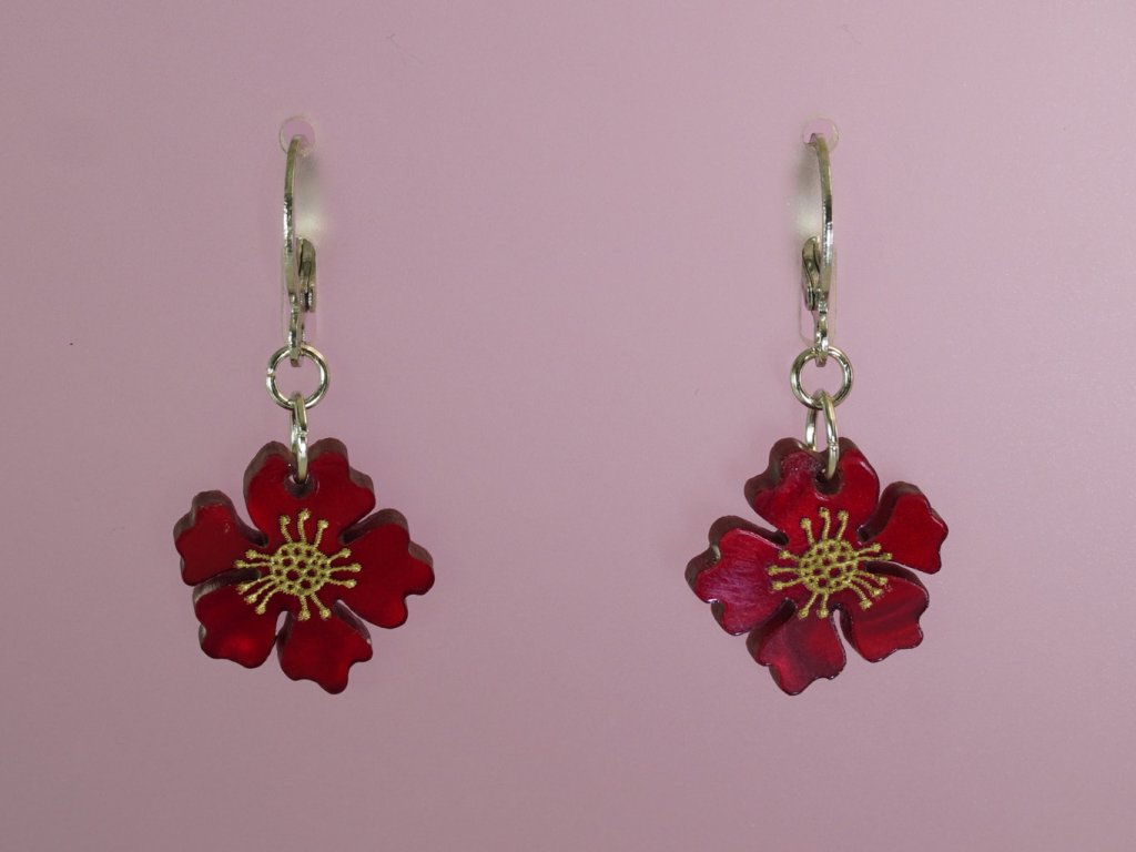 Jemné červené kytičky pro velké i malé milovnice náušnic. Jsou vyrobeny ze speciálního šperkařského akrylu, ve kterém se prolínají různé odstíny červené barvy s perleťovým efektem. Díky tomu je každý pár unikát, který budete mít pouze vy.