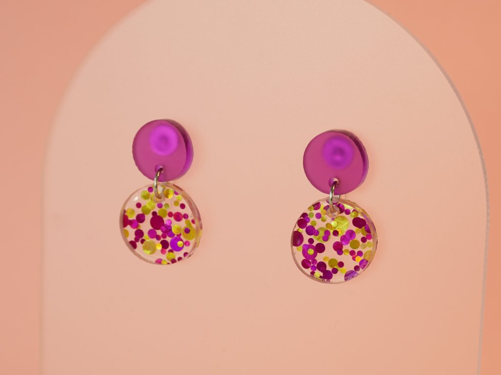 Stylové visací náušnice vyrobené z akrylových dílků připomínajících řekou ohlazené kamínky. Tento originální doplněk v růžovozlatém provedení se skvěle hodí ke každému outfitu – od každodenního nošení až po večerní setkání.