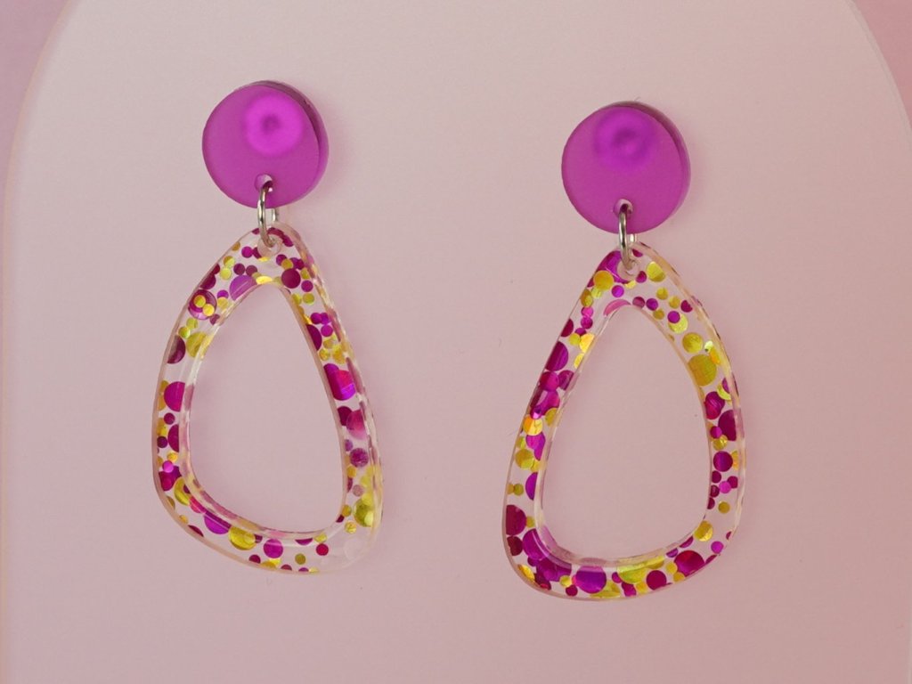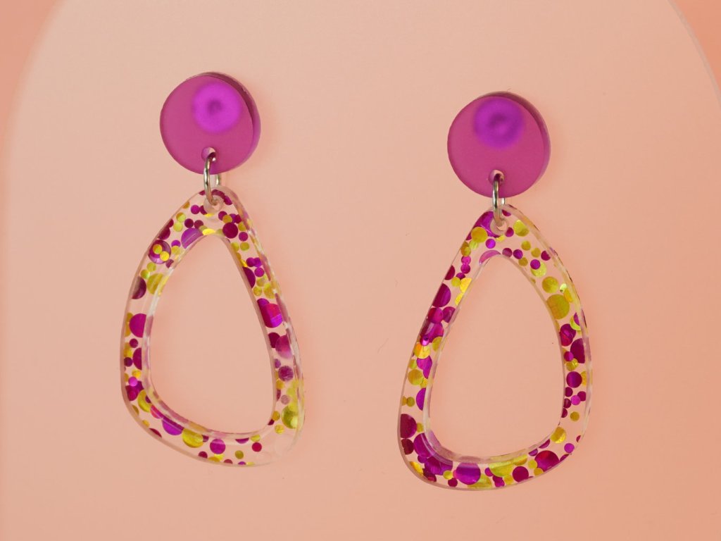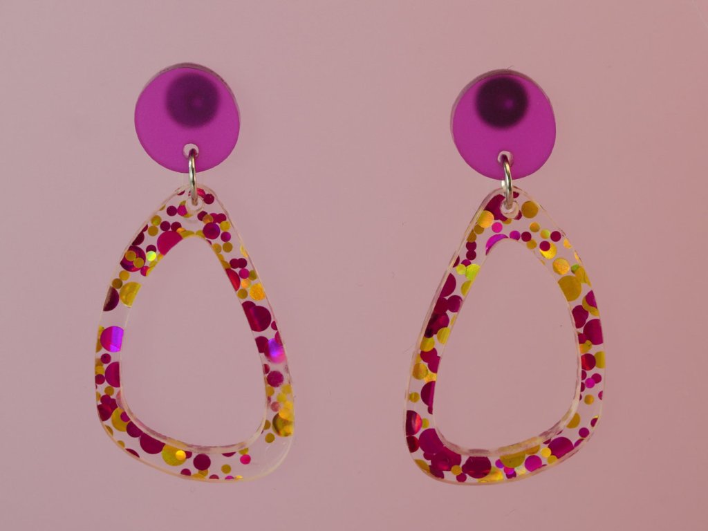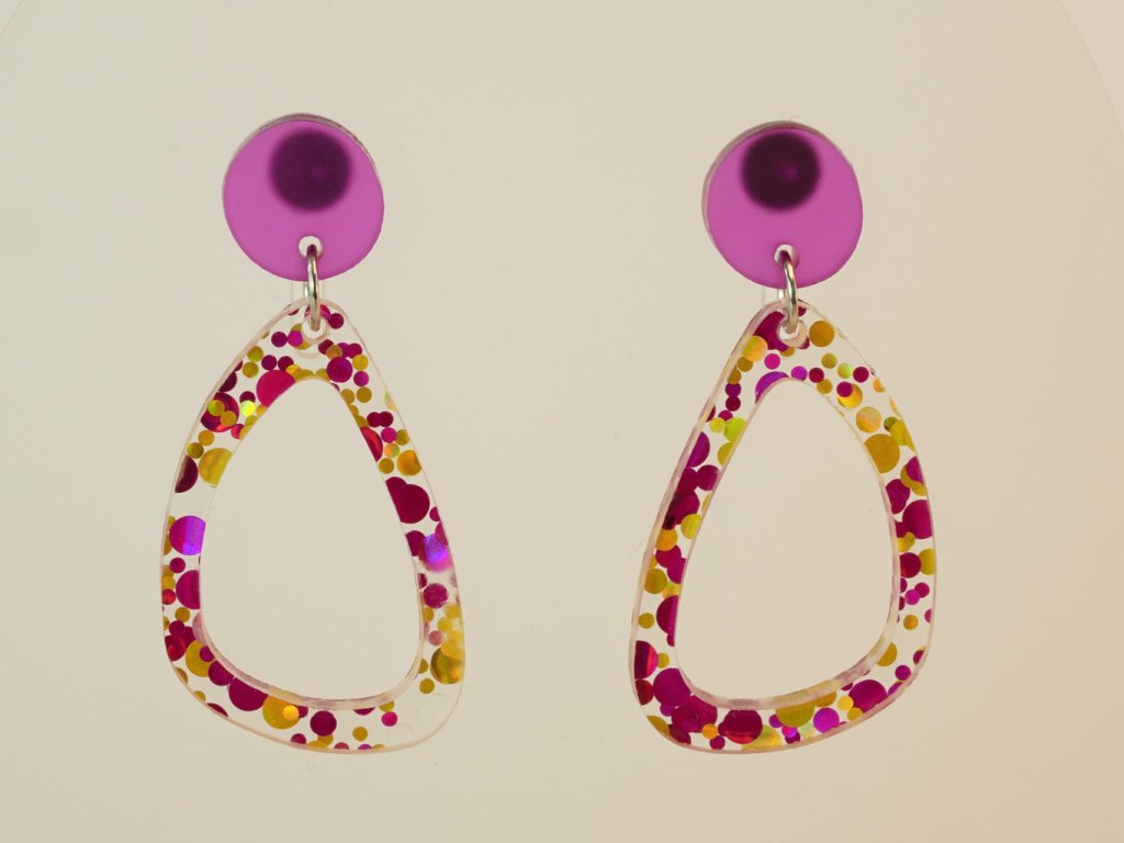Stylové visací náušnice vyrobené z akrylových dílků připomínajících řekou ohlazené kamínky. Tento originální doplněk v růžovozlatém provedení se skvěle hodí ke každému outfitu – od každodenního nošení až po večerní setkání.